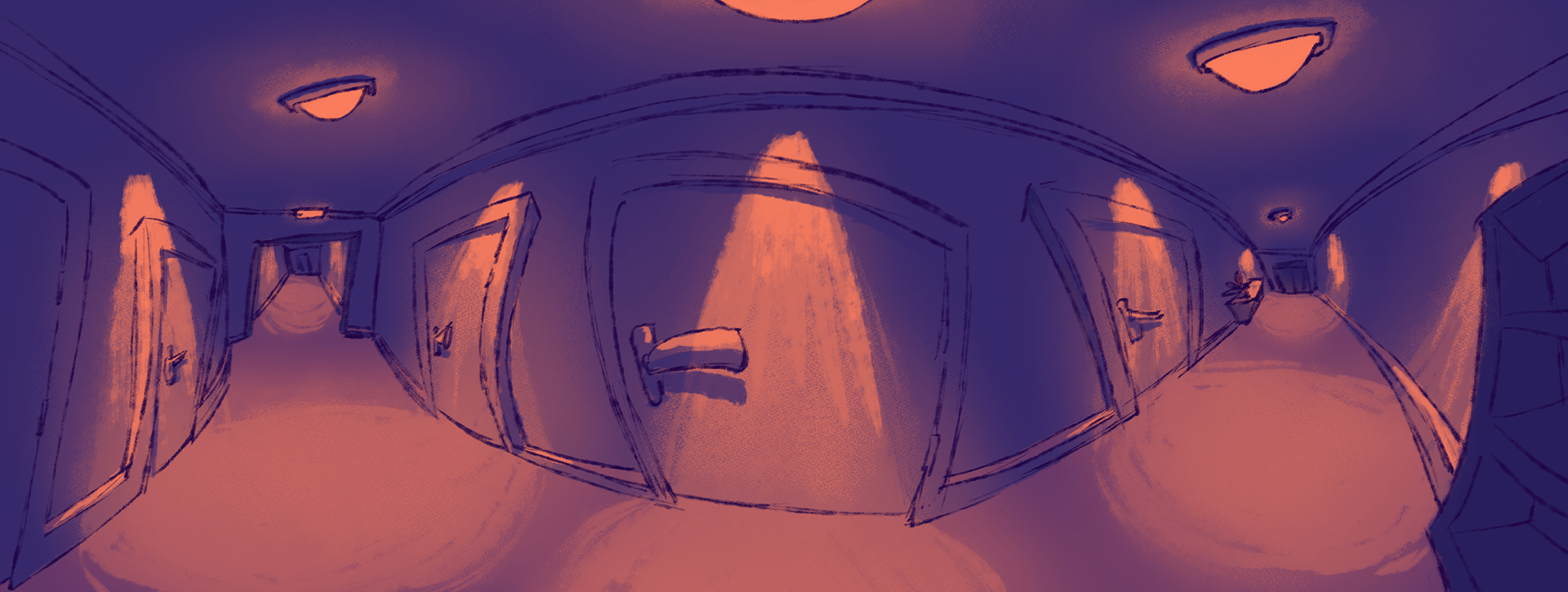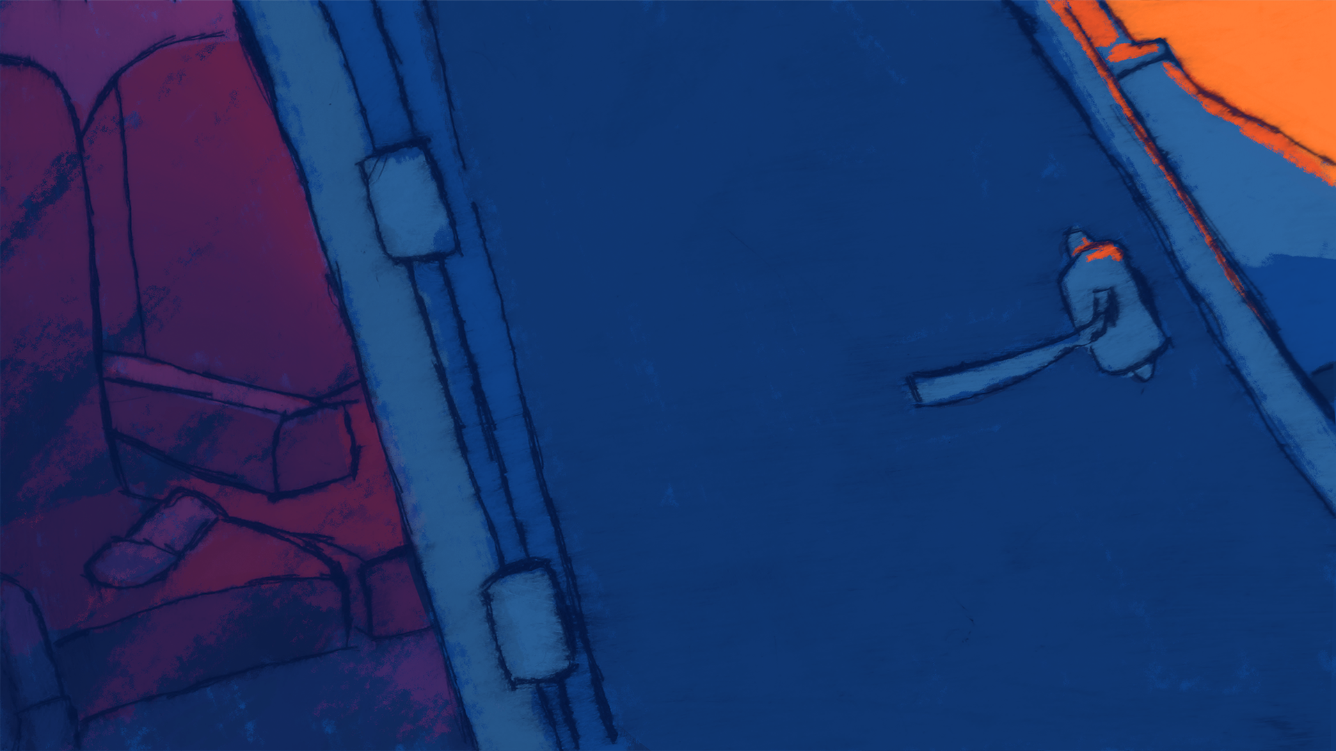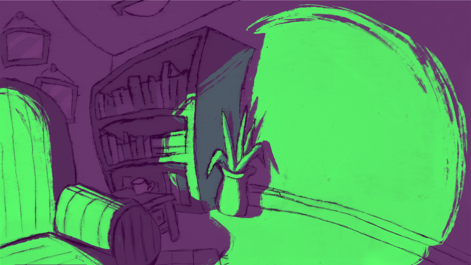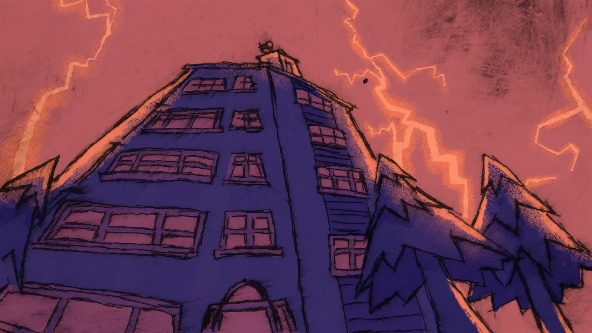 For this film I worked on the background art. Through skewed and bent perspectives, I set out to add an extra layer of unease to the murder mystery.