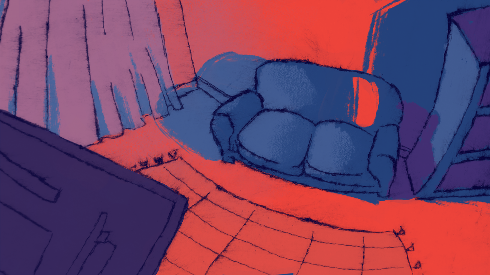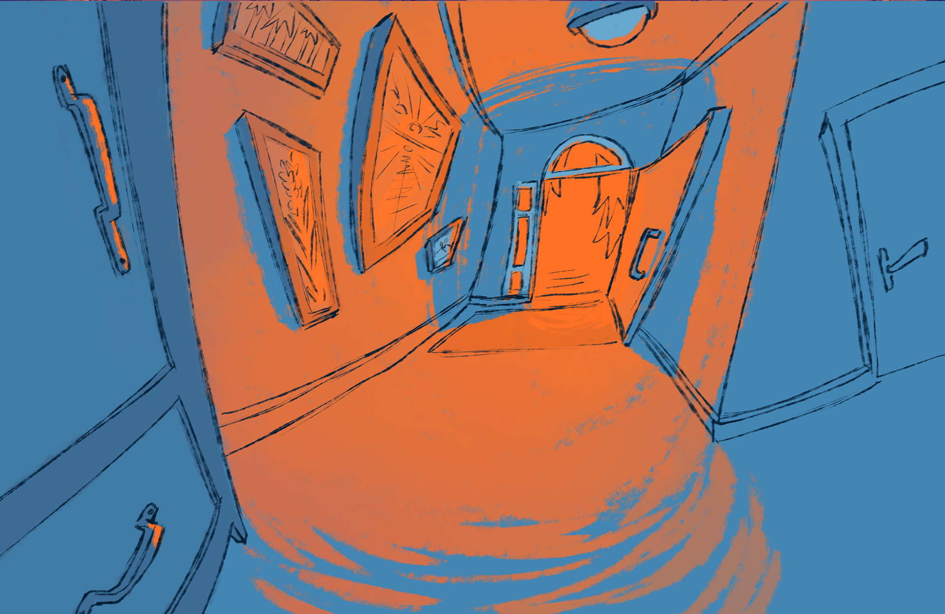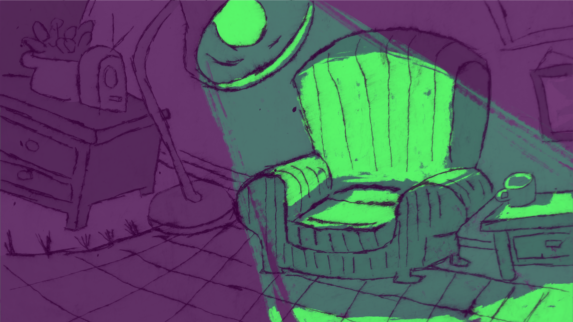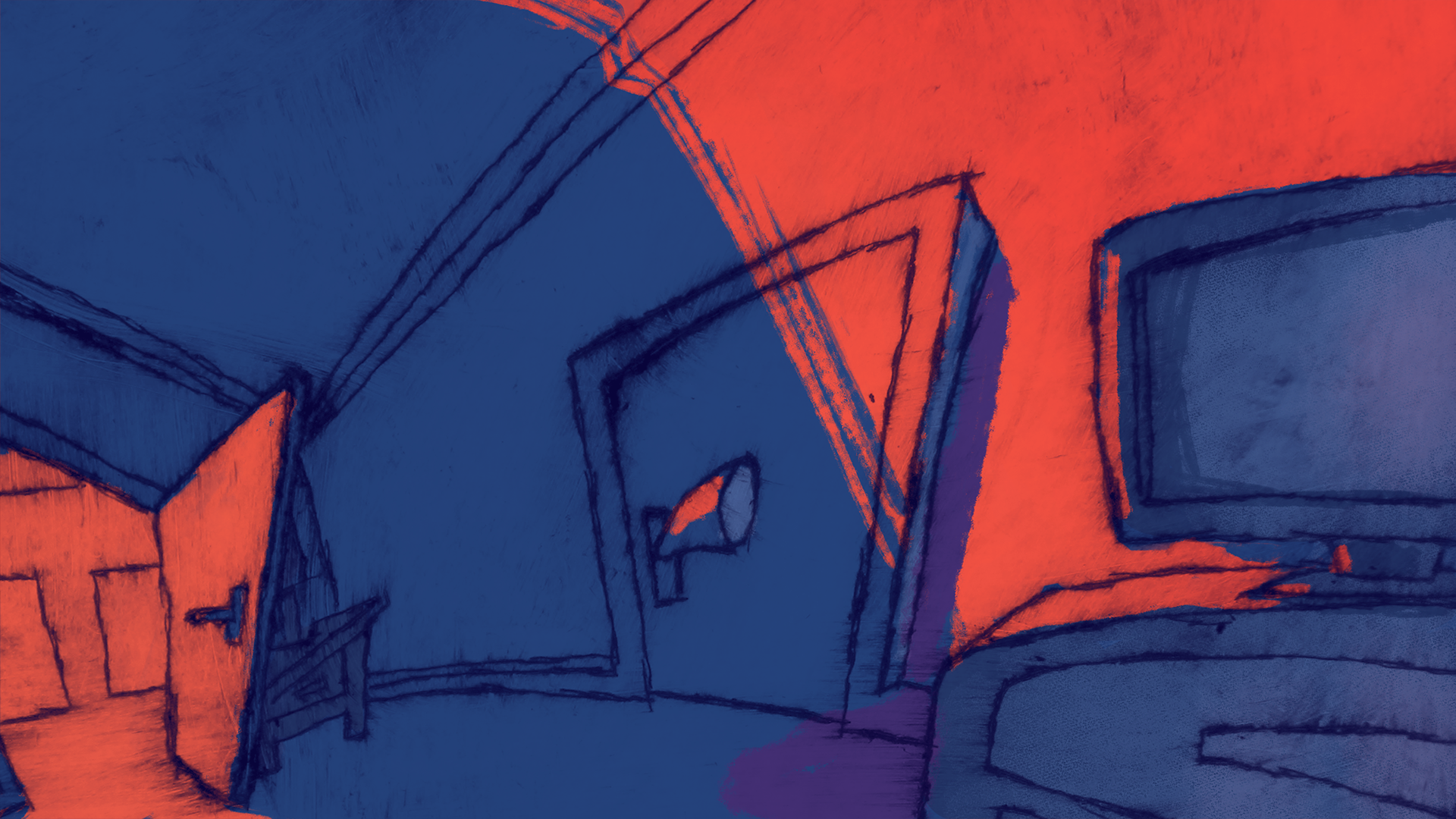 For this film I worked on the background art. Through skewed and bent perspectives, I set out to add an extra layer of unease to the murder mystery.